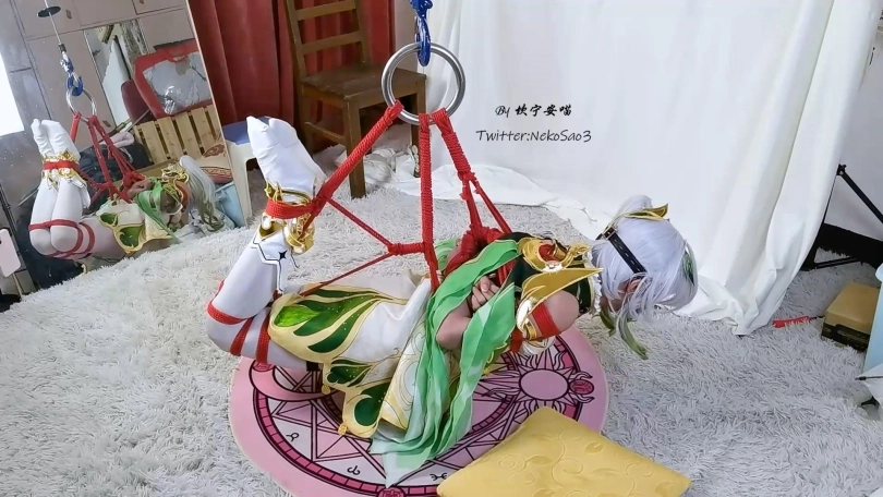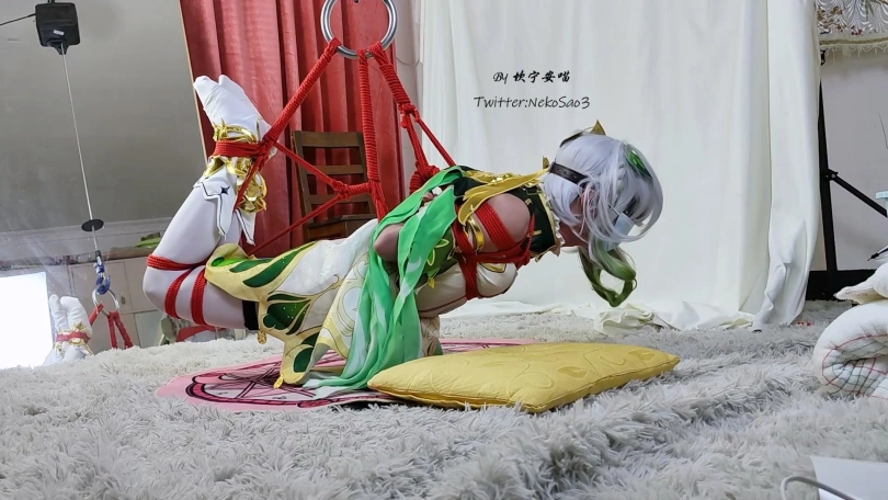【坎喵】原神cos-草神纳西妲白丝驷马悬吊电击-痛苦挣扎
