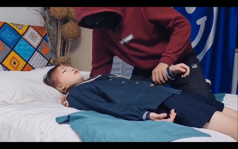 少女被弄晕后脱衣摆弄,涉及元素有睁眼昏迷、摆弄、换装、JK、丝袜等。