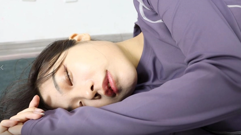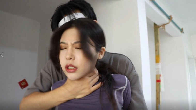 米娅小姐姐被面具男背后袭击,面具男不断掐米娅小姐姐的脖子虐待米娅,最后将米娅掐晕。