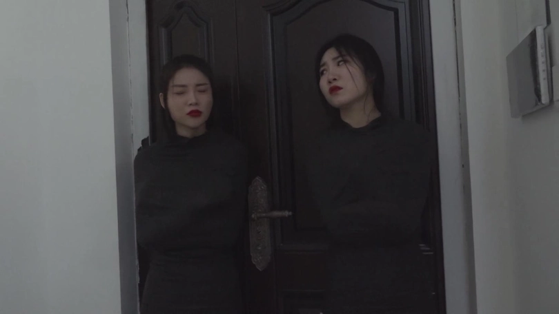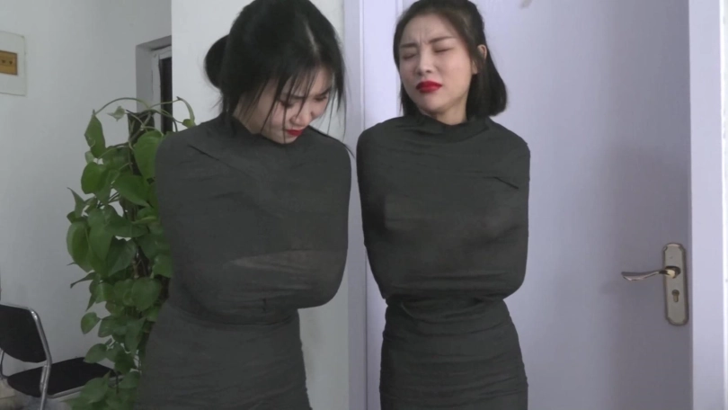 【逍遥】《黑色美人茧——双木乃伊紧缚01》2位油光丝袜美女被层层绷带包裹 越挣扎包裹反而越密集