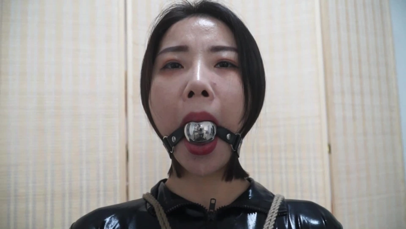 全身皮衣捆绑+高跟鞋被三种口球轮流堵嘴 口水从开始流到结束流个不停