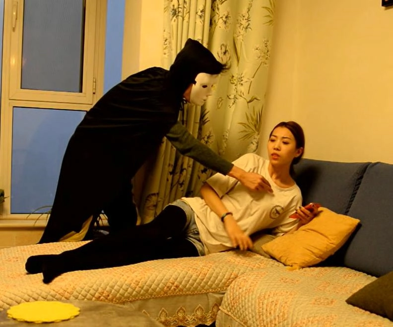 【得意客】难忘的周末 小丽在家玩手机被带面具的人点住穴道玩弄小脚,解开她后反抗又被定住,趁着面具人离开冲开穴道,穿上靴子想逃跑开门又被点穴定身,男主把她抱回沙发脱了她鞋子。女主假装屈服,男主解开她后