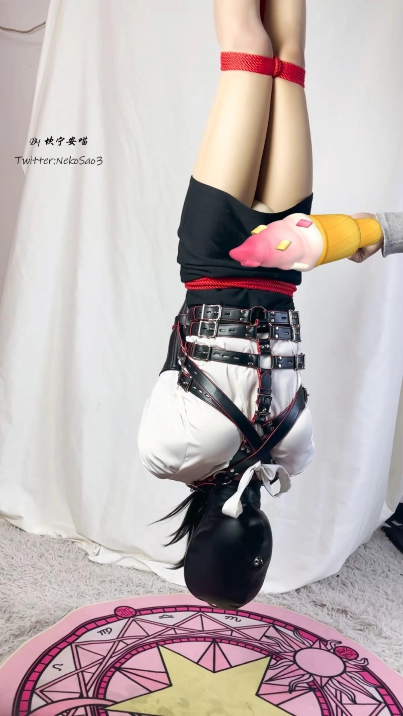 【坎喵】肉丝OL拘束衣+单手套+全包头套倒吊放置+强高
