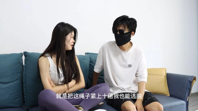 男友:哎呀,你都被绑成这副模样了,还能拿我怎么办呢,看我先把你的嘴给堵上,省得你还在这唧唧咋咋的。