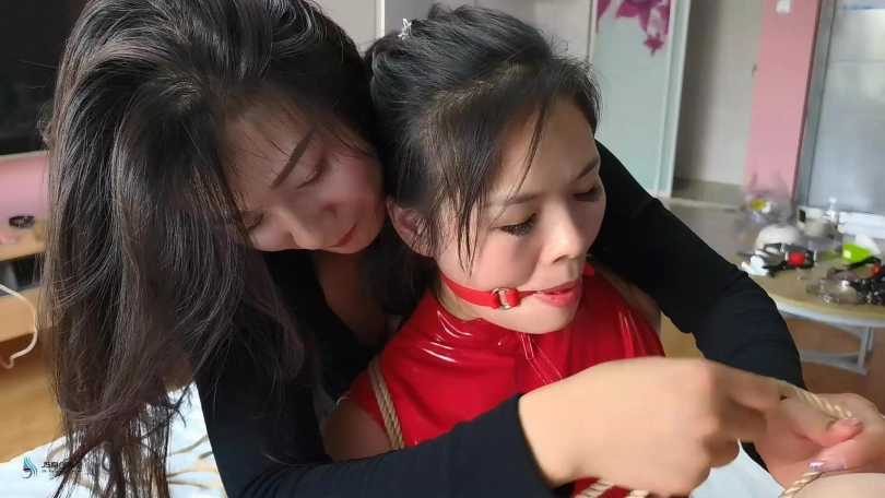 女王无聊的在家把玩着一些情趣道具,觉得自己一个人玩无聊,便躺在床上睡觉。但她不知道她已经被人盯上。一名女贼悄悄的闯入房间,迅速的将床上的女王捆绑起来,给她嘴里戴上口球。将她绑成一个驷马。女贼一边挠着她脚心,一边用鞭子抽打着她说:“我盯你很久了,知道你有特殊爱好,自己玩多无聊,来,让我陪你玩玩吧。”女贼无视女王发呜呜的发出抗议声。将女王的双腿绑成了一个M型。女贼脱下靴子,用丝袜脚丫不断在女王身上游走,在其最敏感地带不断摩擦。然后又拿出快乐棒刺激着女王的敏感地方。很快女王强烈的抗议声变成了很享受的呻吟声音。。。