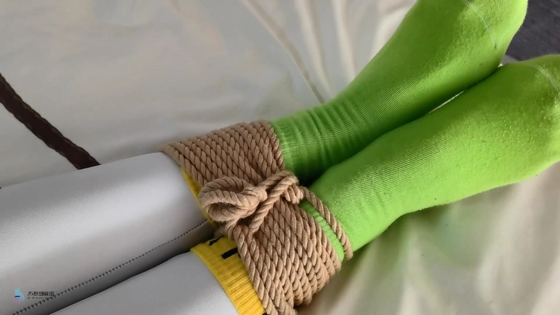 激辣躺在床上休息,而她的旁边也躺着一个人。但是这个人做着很奇怪的动作。她不断的在床上扭来扭曲。原来她的手脚被捆绑着。胯部被紧紧的勒着股绳。她的嘴里被塞着一只口球,眼睛也被蒙上。没错,这正是激辣的室友丹维。