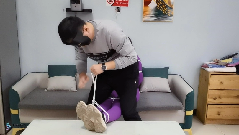 艾菲赌博并欠了好多钱,这天债主打来电话要账,艾菲请求再宽限几天,但对方不耐烦的挂断电话。某天,债主趁着艾菲不在家,偷偷的潜入了艾菲的家中。当艾菲回到家中,但她并不知道家中已经有人。她坐在沙发上休息,债主从后面悄悄的走过来并抱住了她,艾菲惊慌的挣扎,但她很快就被对方用绳子捆绑起来。艾菲努力的解释自己过几天就会把钱还给他,但对方显然已经不愿在等待。对方表示:“既然你还不上钱,那就用你的身体偿还吧”。说完便搂着艾菲,不断的抚摸刺激着她的胸部和下面。债主再离开前找到一双艾菲没洗过的棉袜塞进她的嘴里,并用绷带缠住她的嘴。艾菲在沙发上不断的挣扎着,扭动着。她想在对方回来前自救。她摸索到了自己的手机,正要打电话时对方折返了回来。对方很生气艾菲的行为,抢过她的手机,又对她进行一轮玩弄。最后艾菲被对方抗走,放进汽车的后备箱被拉走卖掉。