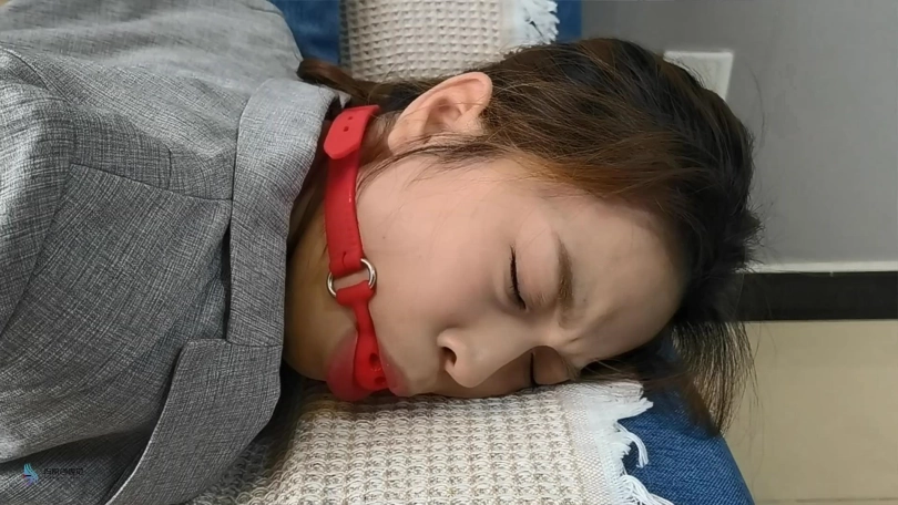 场景4:宫怡被绑(驷马) 在桌子上。她被一个红色的球堵住了嘴。她醒来时呻吟着,有点挣扎。青柠走过去说:“终于醒了?我会让你后悔当初抢了我。”。宫怡呻吟着,看起来很害怕,试图说“不,请……帮帮我!!”并乞求。青柠慢慢脱下高跟鞋,穿着长筒袜挠着脚。宫怡试图说:“住手!!不!!求你了!”但她只能说:“嗯!”挠了一会儿,青柠脱下了宫怡的袜子说:“这些偷窃一定让你的脚出汗了。你喜欢自己脚的味道吗?”她把袜子捆起来,强迫巩义闻自己的袜子。她还把巩义的鞋子放在鼻子上,强迫她闻一闻。巩义呻吟着。