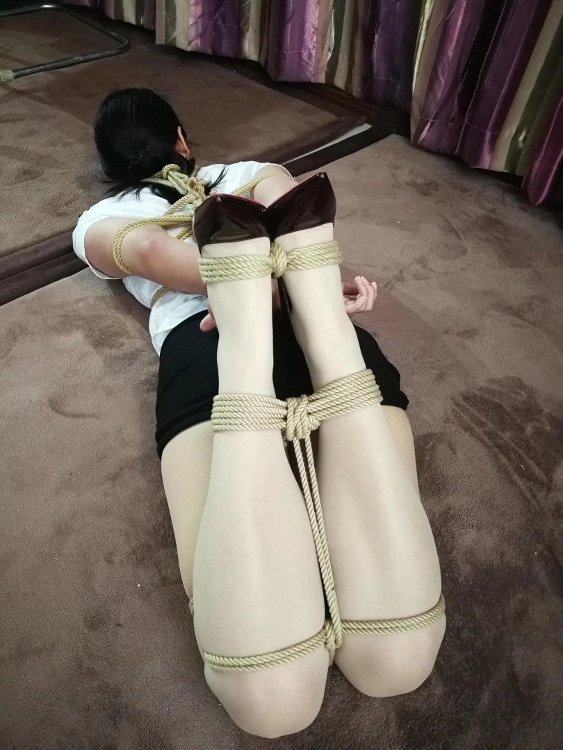 女主角穿上了OL制服与肉色丝袜 不仅仅被紧紧捆绑住 而且口中还被强制塞入了QQWJ并被牢牢地胶布封嘴 只能无助地蒙面男玩弄肉体 后更是被捆成驷马放置