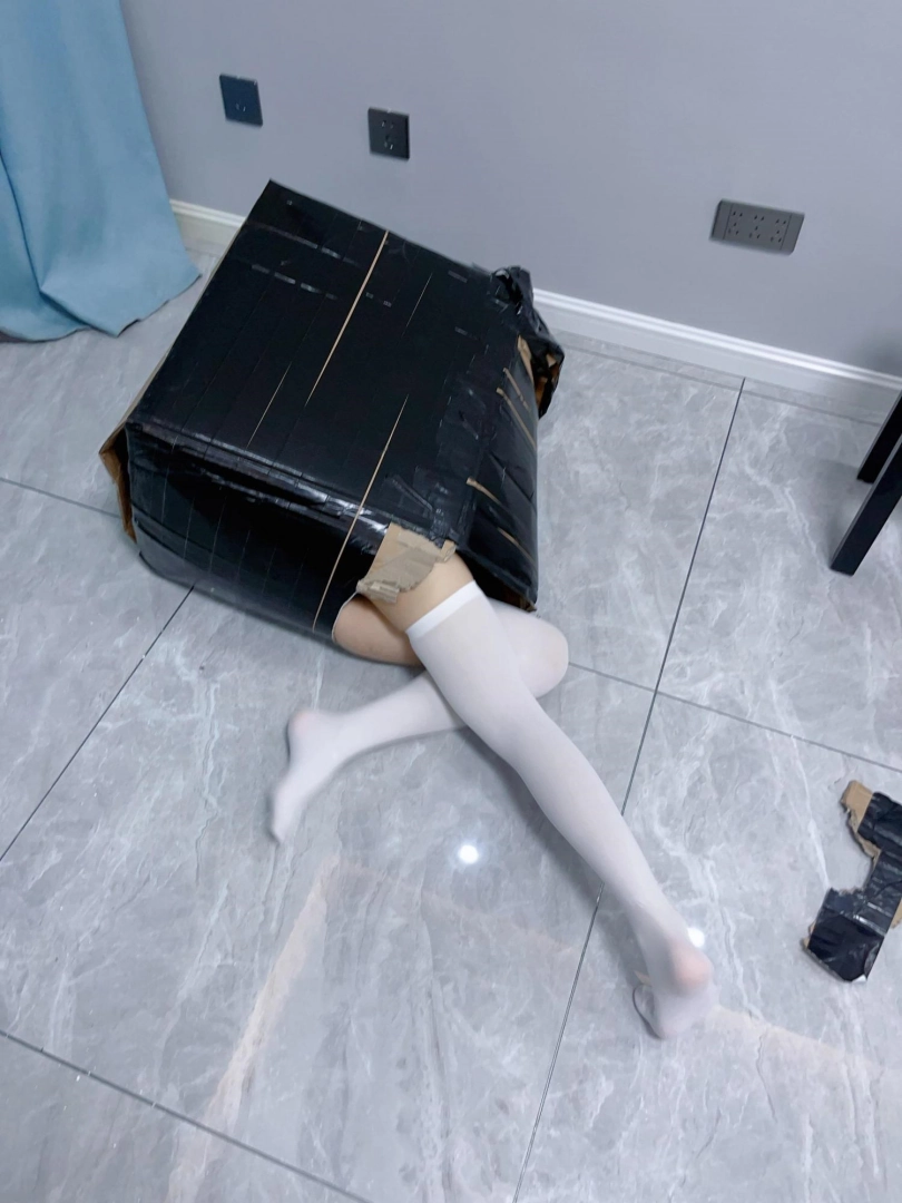 装箱脱出挑战第二部来啦!这次让茶茶穿上白丝死库水,难度升级哦———这次会把茶茶的双手握拳用银色胶带包裹好,然后把茶茶双手背缚,两个小臂死死反绑在一起,绝对没有用手辅助脱缚的可能!