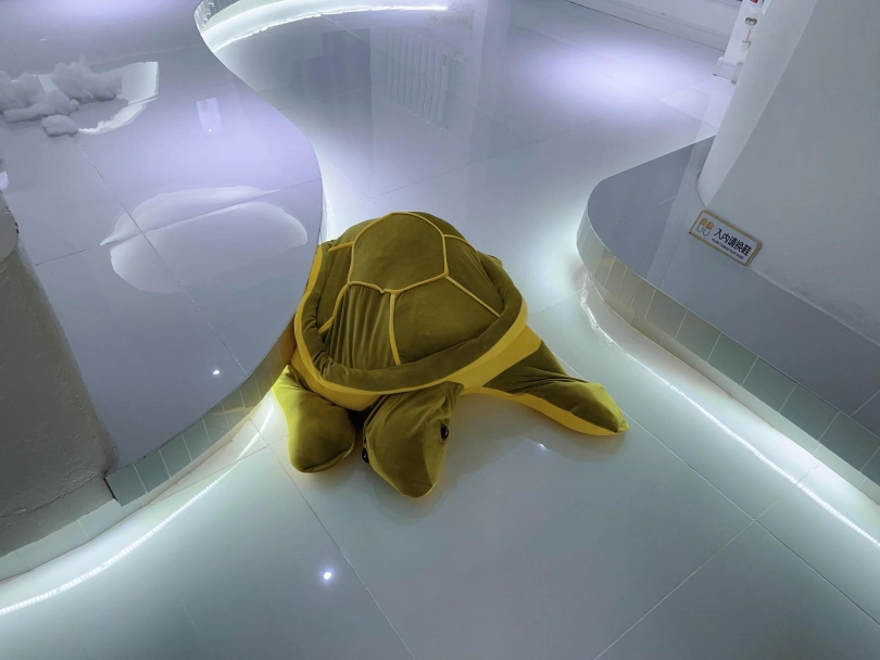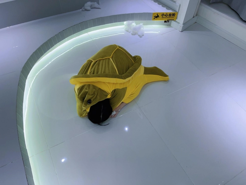 part1:把茶茶四肢折叠放入毛绒玩具乌龟中,填充棉花使毛绒玩具有压迫拘束感,增加爬行难度。(带穿入过程,大概3-5分钟),然后命令茶茶在乌龟中完成爬行上下台阶等动作。同时恶趣味翻面茶茶,让小乌龟自行翻转回来。