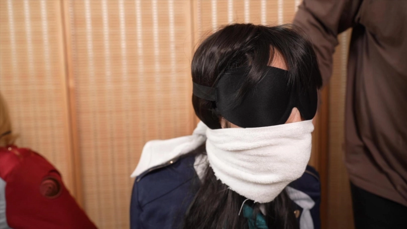 扎带绑脚趾,嘴巴塞袜子+绳子+胶带+毛巾+丝巾封堵