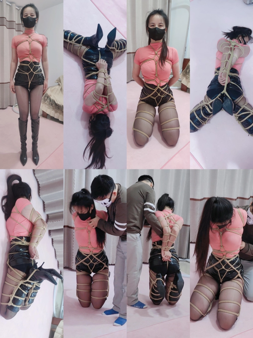 【素人】亮光黑丝龟甲缚双腿束缚欧式直臀极限驷马跪着走