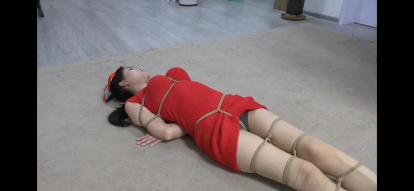 第二天柳洋还是穿着红色服装白色高跟鞋,这次穿了一双肤色丝袜,来到了学生家中。眼镜男子:“嘿嘿,老师你来啦,哦你先坐我去给你倒杯水。”柳洋也是坐在了电脑面前,突然看到电脑上的学习资料文件,柳洋就是为了给自己的学生补习而来的,所以得先看看自己的学生预备了哪些学习资料,结果一打开,柳洋吓了一跳一跳,这时候镜头拍摄电脑桌画面,原来这个文件没有任何的学习资料,里面全都是一些女孩被绳子捆绑起来的图片,而不知道为什么柳洋一张一张的看了起来,丝毫没有发觉自己的学生已经来到了房间中。眼镜男子将水杯放在柳洋面前,但是柳洋一点反应都没有,眼镜男子走到柳洋身后,趴在了椅子上,突然开口说:“老师,好看吗?”正在看着图片的柳洋被吓了一跳说:“你怎么回事啊,怎么走路没声音的。”眼镜男子说:“冤枉啊,我可是早就进来了,只是看老师看得高兴没打扰而已。”柳洋说:“难怪你成绩不行,原来你的心思都放在了这个上面,你告诉我那些图片是怎么回事。”眼镜男子:“那只是个人爱好而已,老师你不也看得很入迷吗?”柳洋撰着拳头就要打过来:“你还说。”眼镜男子一躲说:“怎么样,老师你要不要试一下。”柳洋:“我才不要。”眼镜男子:“老师你可是答应过我的哦,答应我一个条件。”柳洋犹豫了一下,不过最终还是答应了下来。两人来到客厅的沙发上,眼镜男子拿出一个单手套和几根皮带。柳洋好奇的说:“这是什么啊?”眼镜男子:“等一下你就知道了。”眼镜男子先将柳洋的套袖摘下来,然后慢慢给柳洋戴上单手套,随着单手套的带子一根根系紧,柳洋挣扎了一下说:“好紧啊,手动都动不了了。”眼镜男子没有理会,继续为柳洋穿戴单手套,穿戴好之后,在用一根皮带将柳洋的脚腕捆好。随后男子让柳洋趴在自己膝盖上,用手拍打柳洋的臀部说:“让你不听话,平时总是批评我,这下该好好的惩罚惩罚你。”拍打一会之后,眼镜男子来回抚摸柳洋的腿部突然说:“诶老师,你的丝袜好像破了一个洞哎,既然都已经坏了,那我就在帮帮你。”然后从大腿部慢慢撕烂丝袜,露出柳洋的赤足,但不要脱掉。眼镜男子抓着柳洋的赤足说:“老师你的脚真好看,就是不知道敏不敏感。”然后抓起柳洋的脚挠起了痒痒,眼镜男子看了看时间说:“哎哟,这么快就该吃饭了,嘿嘿,老师你等一下,我先去买饭。”然后将柳洋重新捆好,让柳洋平躺在地上。做好之后男子说:“老师你要听话乖乖的等我回来哦。”然后留下柳洋,柳洋躺在地上来回挣扎,慢慢移动到房门边,然后躺在地上伸出自己的双腿想要搭在扶手上将门打开,尝试几次之后终于够到了扶手。不过就在这个时候,眼镜男子回来了。看到在门边的柳洋男子生气的说:“老师你不听话哦,居然趁我出去的时候想要跑。”随后男子将柳洋重新抱回了沙发上。眼镜男子将柳洋上半身后手缚捆好,柳洋坐在沙发上说:“都玩这么久了,快把我放开,你该学习了吧。”眼镜男子说:“嗯,对也差不多了,可不能辜负老师的一片苦心,不过老师你要是趁我学习的时候跑了怎么办。”柳洋:“我就是来帮你补习的,我能跑哪去啊。”眼镜男子:“那不行,等学习完了在帮你解开,不过麻烦老师帮我把学习资料拿过来怎么样。”柳洋:“我被捆得动都动不了了,怎么去帮你啊。”眼镜男子扶着柳洋站了起来,拍了拍她的臀部说:“快去,不然我就不学习了。”柳洋没办法,只好一蹦一跳的跳到不远处将一支笔一个书本拿了过来。眼镜男子扶着柳洋让她躺在地上,拿出一根绳子准备将柳洋驷马捆绑起来。柳洋说:“你干什么。我都说了不会走的,还不把我放开。”眼镜男子:“那刚刚你为什么趁我出去还跑到客厅来了。”柳洋:“我那是有事,我不会跑的。”眼镜男子没有管柳洋的挣扎,于是将柳洋驷马捆绑起来。接着眼镜男子将书本放在柳洋背上,眼镜男子也是趴了下来,将柳洋当做了桌子,就趴在柳洋背上学习了起来。没一会后眼镜男子说:“老师你草稿纸忘记帮我拿了哦,我又不想自己去拿。”想了好一会说:“诶有了。”柳洋不知道他又出了什么鬼点子,只是突然觉得脚心传来了瘙痒的感觉,原来眼镜男子将柳洋的脚心当做了草稿纸,正在柳洋的脚心上写写画画。