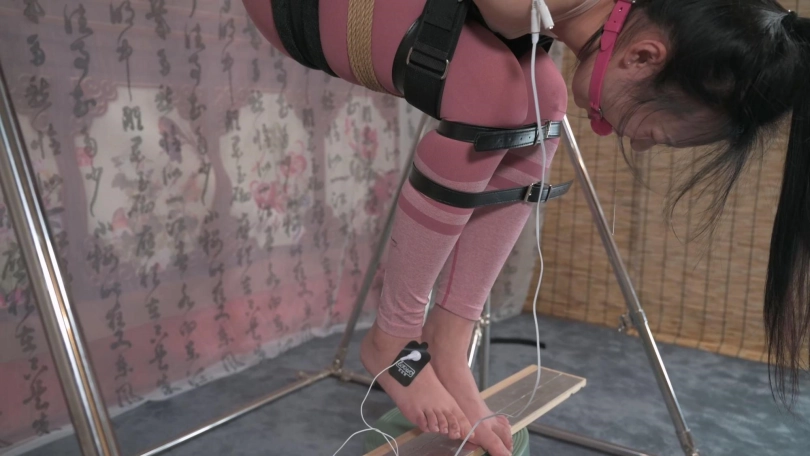 【撒琅制造】高挑妹子屈体吊缚,终于给她整哭了--瑜伽服、口球、口水、皮带、悬吊、电击装置