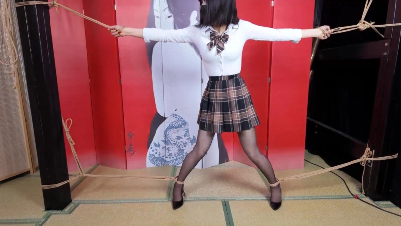 【象人】小O-JK黑丝细高跟,椅缚+柱缚+大字缚,TD展示