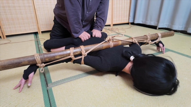 慢慢发现原来她的腋下最怕痒,于是让手固定在竹竿上