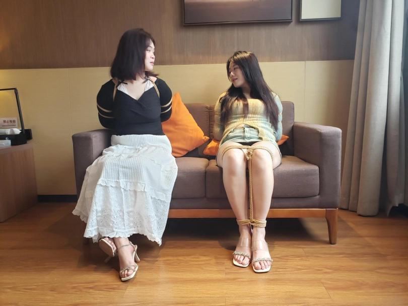 小月带着闺蜜一起来体验绳艺,过来之前没有跟闺蜜说要被绑起来,闺蜜刚进门看到绳子就懵了还有点慌,被绑起来还经常用方言吐槽。哈哈!