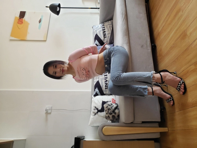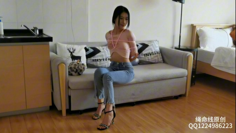是个很漂亮的妹子,也很放得开,绑起来还能玩手机。