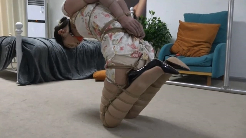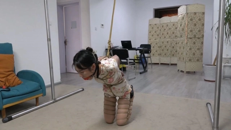 【逍遥】韩玉(琪梦)旗袍直臂跪缚后手吊 痛苦的膝盖顶地放置