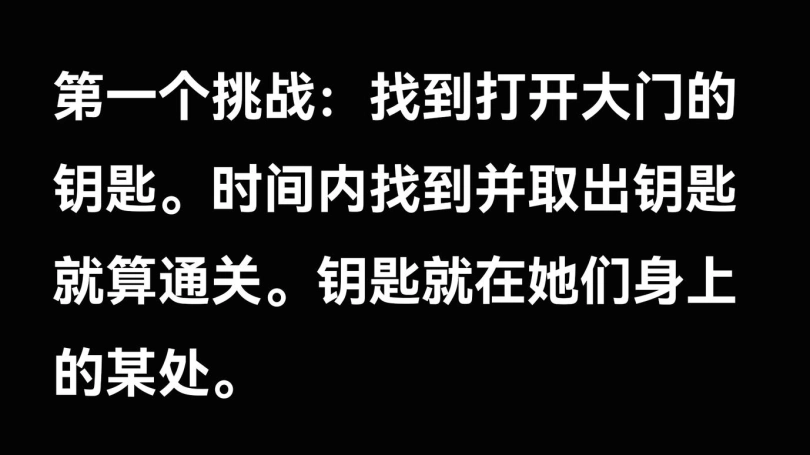 2个美女互相望了望只能点头同意,面具人说第一个挑战就是找到打开大门的钥匙。时间内找到并取出钥匙就算通关。