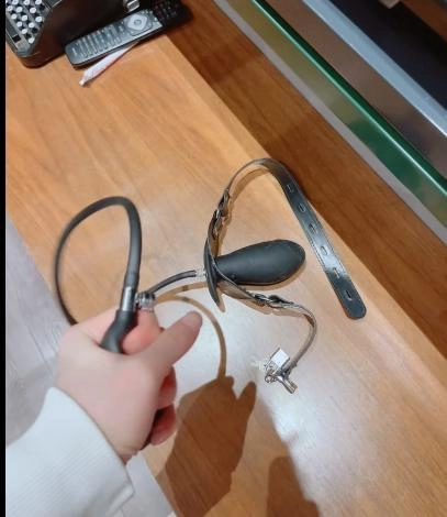 2.给茶茶戴上充气口塞,在茶茶罚站的时候捏重启口塞的气泵,让充气口塞在茶茶口腔内膨胀,填满茶茶口腔的每一个角落,这个充气口塞充满气几乎和茶茶脸一样大,连喉咙都堵满!
