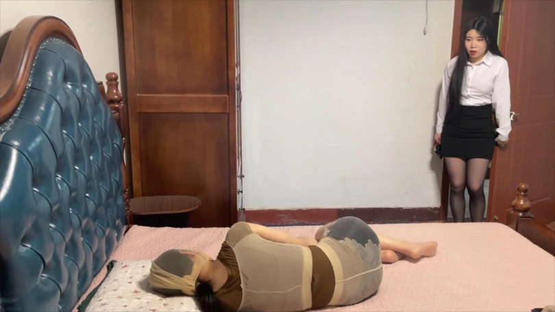 然而这确实是一场噩梦,吴晗根本没有从那场事件中逃出来,她与那个女人都被丝袜全包衣包裹起来,无法逃脱。原来女人的同伙也没想过让她逃跑。看到昏迷过去的女人,吴晗自知自己也凶多吉少。最终她们俩脸对着脸,胸对着胸被丝袜绑在一起,永远地囚禁起来。