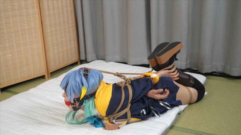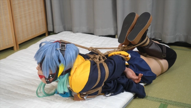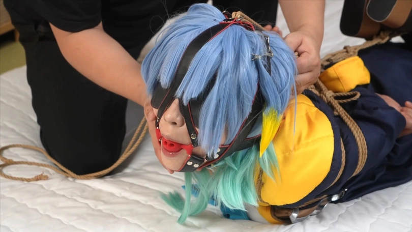 被抓回来以后,剥夺了视觉,还戴上了马具口球,驷马捆绑起来