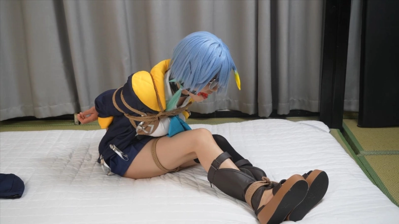 巴巴洛斯(小0)醒来发现被捆绑住了,只能在床上挣扎,