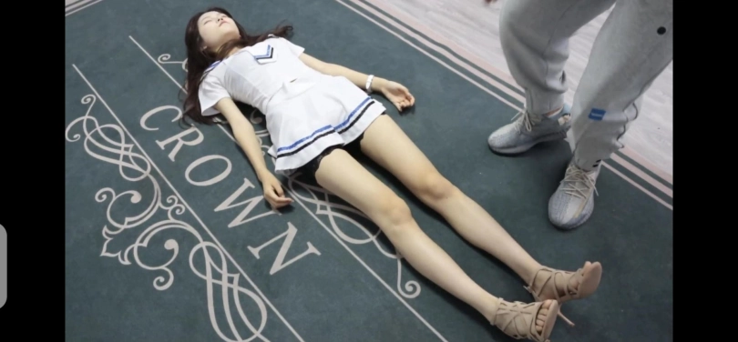 美女大学生上门推销,没想到被变态老板弄晕后换上性感的制服和高跟凉鞋摆弄。女学生全程都在婴儿般的睡眠中毫无意识。