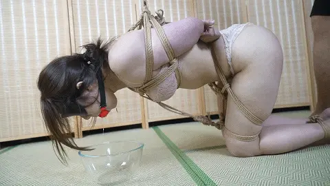 最后老板重新绑了一套后高手,沉沉被戴上了眼罩和口球,跪姿吊缚放在地上,在一阵阵呻吟声中不断挣扎。。。