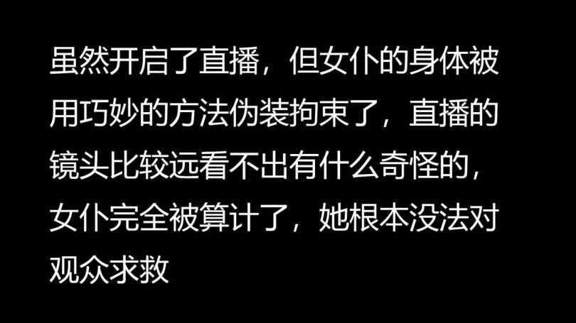 男人离开去准备直播器材。美女偷偷自言自语。太好了,终于博得他的信任,自己根本没真正屈服。男人在官方平台直播肯定不能捆绑我。 到时候直播时当众求救,肯定能引起别人的注意。