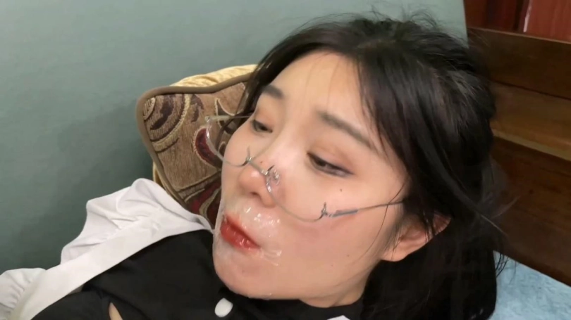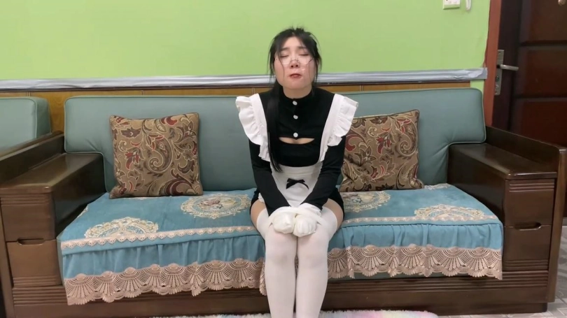 美女迷迷糊糊地从沙发上醒来,发现自己被伪装拘束了。从视频上根本看不出她被拘束了。
