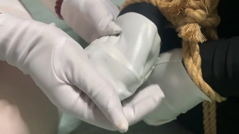 吴晗说先帮主人检查一下仪容仪表,把曼妮扶起来检查她身上的绳子,发现有松动的绳结再加固一下,检查背部的时候发现曼妮有明显解缚的情况,吴晗说主人就该全身被捆绑,这可是身份的象征。怎么可以想着解开呢?吴晗说给主人带给贵族手套吧。她拿出泡沫胶带把曼妮2个手都缠绕成了球这样就再也没法解缚了。解开曼妮的封嘴给她喂早饭,曼妮急忙求救,但每次没说几句话就被塞入吃的,说的含含糊糊的曼妮还想解释就又被吴晗封嘴了。