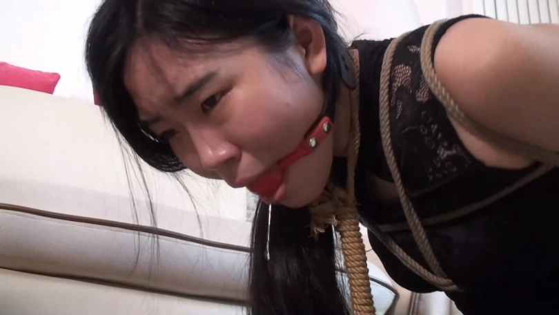 【逍遥】《美女卧底折磨03》黑丝美女盘腿团缚 绳子会自动收紧 变成最紧团缚 口球羞耻滴口水