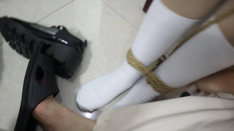 绑在凳子上超级紧缚的痛苦折磨,敏感的身体与腋下,易怒的女孩嘴里骂的越狠