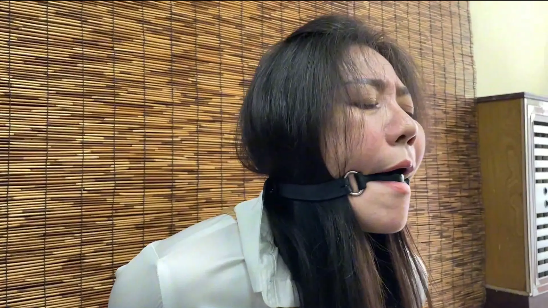 被捆绑的李然渐渐苏醒过来,看到自己被海老缚捆住,顿时吓得花容失色,想要呼救但嘴被堵住只能发出呜呜声。
