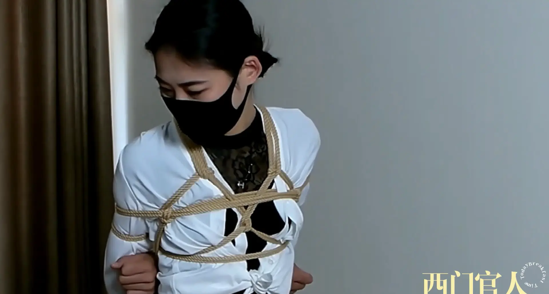 白领穿着白袜、白衫、高叉形体服,被蒙眼封嘴跪缚,大长腿遭受痛苦折磨,却也享受着休息时间的玩乐和逗趣。在这个姿势中,她感受到了一种奇妙的交织——痛楚与[X_X]仿佛在瞬间交替,仿佛置身于一个神秘而诱人的世界。