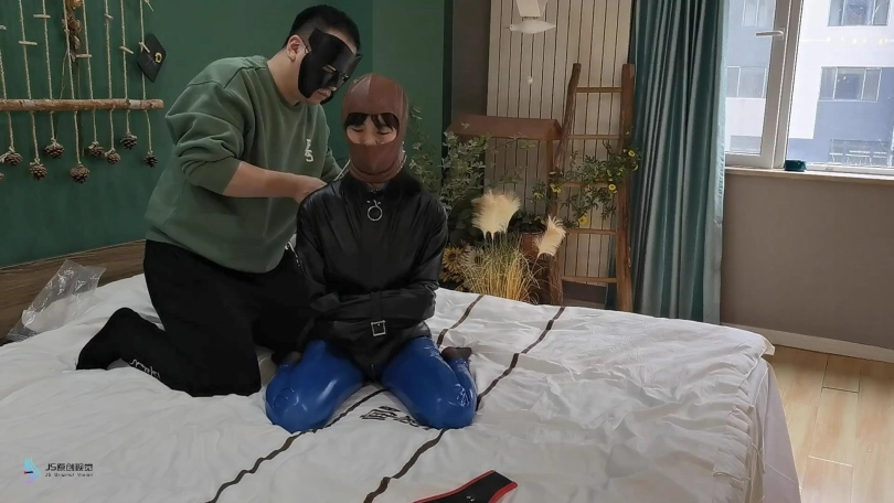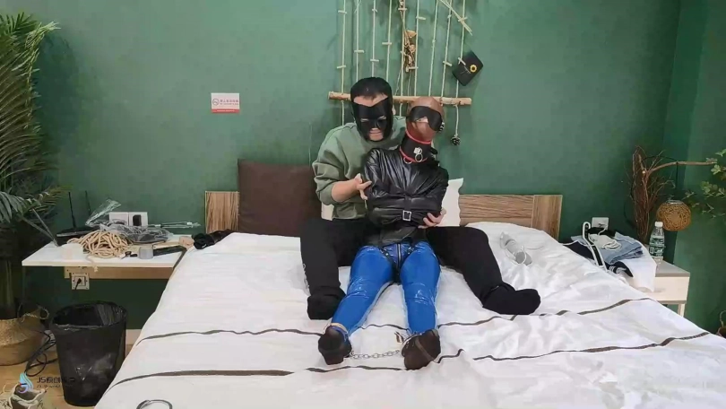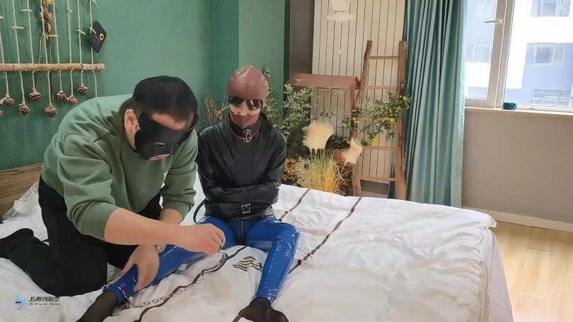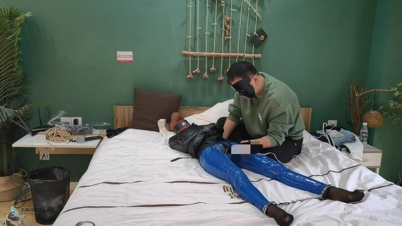【JS】【激辣】拘束游戏胶衣黑丝丝袜堵嘴胶带封堵头套眼罩脚铐棒棒刺激