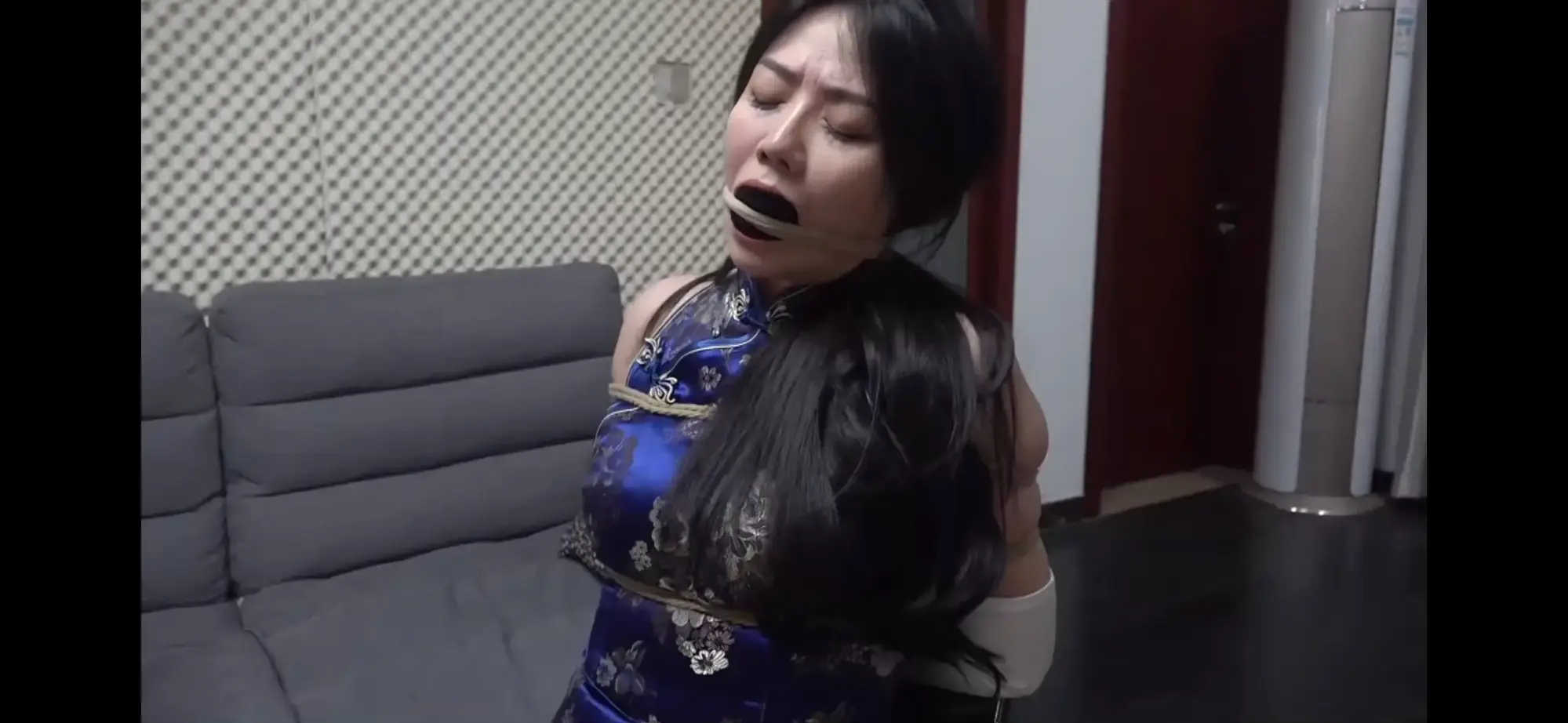 李然大美女作为王牌,演技自然杠杠的,把挣扎时的无助,被捂晕时的昏厥,都表现得淋漓尽致,有一天李然正在家里玩手机(身着旗袍肉丝),突然进来一位歹徒将其捂晕,并不知为何把不知从哪儿来的缎面手套给美女套上,由于手套很长,窃贼不忍摸了摸美女的手,并在之后将其牢牢捆在椅子上,歹徒为李然带上手套是为什么呢,且看李然美女的挣扎后续。