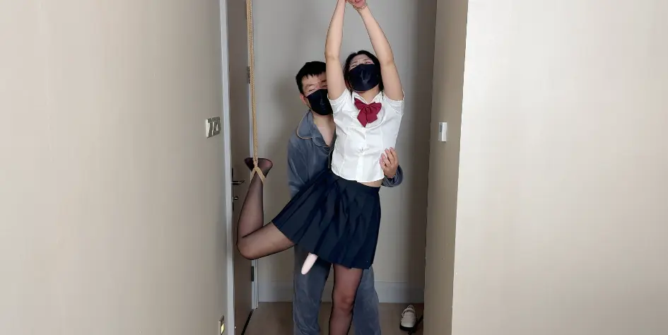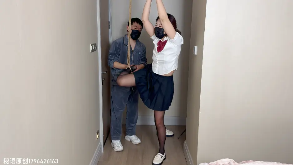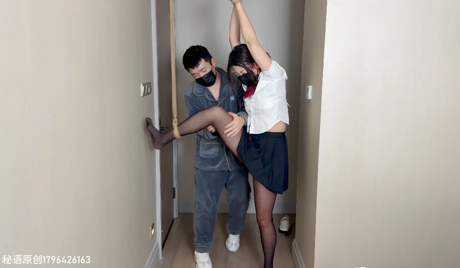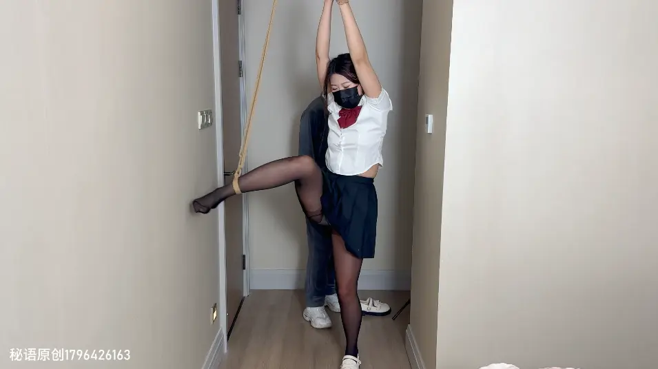 女主来到男朋友家里找他,但被后面一个人捂晕,女主醒过来的时候,手被吊绑在天花板上,脚踝也有一道捆绑,女主问男主怎么会在她男朋友家里,男主说她男朋友欠自己钱,然后用女主来还债,女主无奈,开始不断求饶,告诉男主她也没钱,男主想要钱的话要去找她男朋友,但男主说就是她男朋友没钱,才用女主来还钱的。接下来男主把女主脚踝的绳子解开,把一条腿抬起来也绑在天花板上(单腿吊绑),先抚摸了一会女主的丝袜美腿,然后挠脚心(脱掉一只鞋子),女主边笑边求饶。接下来,男主拿出一个[X_X]