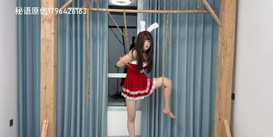 开场先做一个简短的开场白自我介绍:我叫×××(名字),今年(年龄)岁,接触绳艺多久了,今天展示的是圣诞装的捆绑,要表现的羞涩☺️(这是第一幕,完了之后切屏一下)