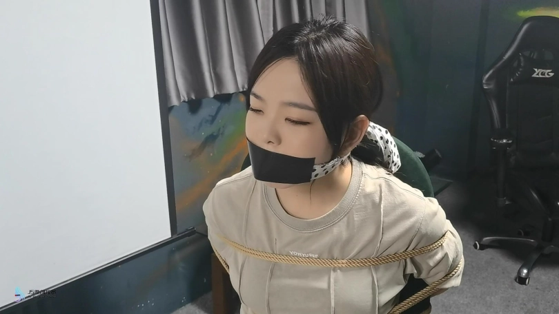 【JS】【梦琪】《少女遇险》椅子缚丝袜堵嘴胶带扎带