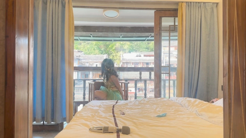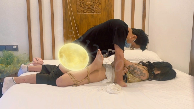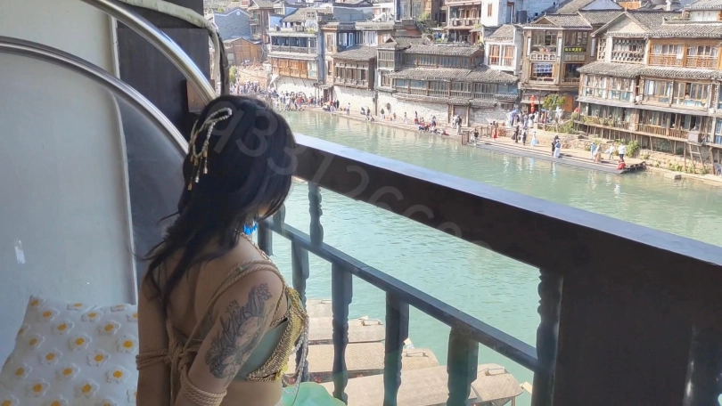 少数民族妹子一枚,在古城的吊脚楼,捆绑放置在露台上,楼下和对面全是游客,放置的时候由于嘴里被堵得死死的,一直呜呜呜的叫着“有人看到了,有人看到了”吓得想动又动不了,刺激爆棚,然后贵吊捆绑固定在床上打开窗户后尽量让外面的人看到就离开了,回来之后已经是吓得脸色苍白,然后就是火力全开残忍的深度捆绑调教