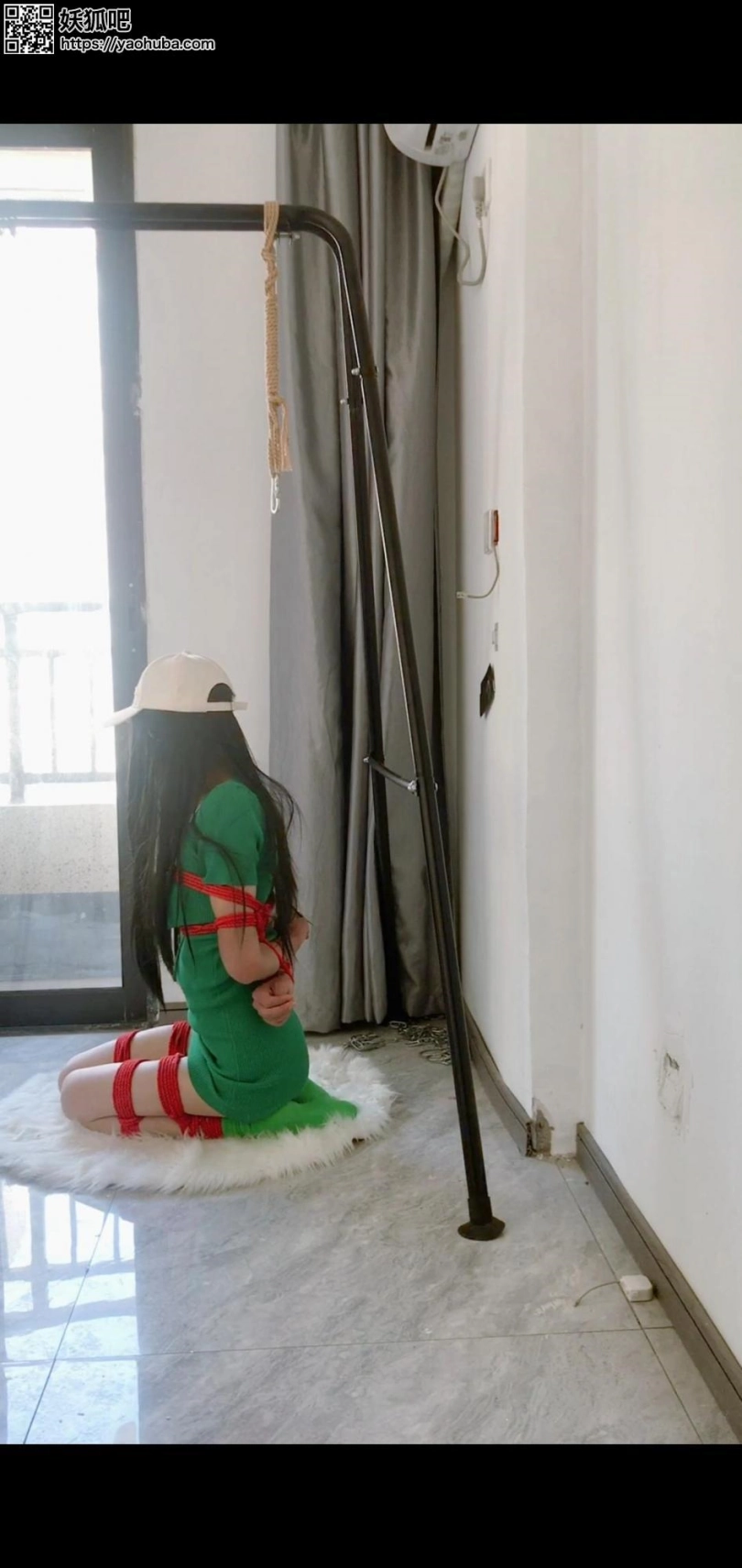 【安妮】再次挑战难受的吊绑玩法+绿色棉袜连衣裙小阳台镣铐~