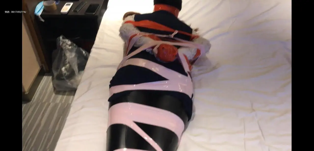 黑色连袜皮裤胶带缠绕挣扎加挠脚心