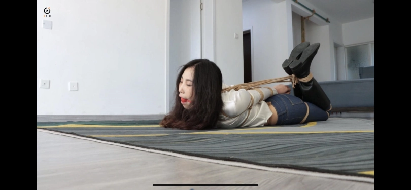 进屋后,歹徒松开捂住女白领的手,女白领立刻求饶,歹徒却说:别废话,我只要钱,乖乖听话我不伤害你等等…为了不让女白领反抗,歹徒拿出绳子准备捆绑她,女白领苦苦挣扎无奈还是被紧紧捆绑住了上半身(加股绳)。尽管上半身被绑住了,但是女白领还是试图用脚去踹歹徒,却被躲过了。歹徒的目光落在了女白领的脚上,见她穿的是靴子:妈的,还穿着靴子,还敢踢我……抓着她的脚在女白领的挣扎中硬是拉开了靴子的拉链,发现还穿着白袜:把你脚绑起来,让你不老实!歹徒抓起绳子直接在脚腕隔着皮靴紧紧绑了好几圈再从中间收紧。捆好脚后又在腿上也绑了绳子加固。最后歹徒掏出口球要塞进她嘴里,女白领说道:大哥,我不喊别堵我嘴………呜呜呜!(话没说完已经把口球塞进去了)。捆好后歹徒让女白领老实在客厅待着他去房里找财物,留下女白领一个人在挣扎。女白领挣扎了半天,挣扎着起身往门口跳去,刚打开了门正要跳出去就被听到声音赶来的歹徒一把抓住,歹徒把她按倒在地,一边骂绑得还是不够紧啊!一边掏出绳子系在原本脚腕上绳子上将她拖到了客厅,驷马捆绑起来,然后歹徒继续找东西去了,留下女白领拼命挣扎,无奈绳子太紧怎么也挣扎不开。一段时间后歹徒出来了,满载而归的他看到挣扎的女白领,突然玩心大起,于是解开驷马的绳子,把她拉起来用推着女白领一步步跳到房里,然后一把推倒在床上。紧接着歹徒按住挣扎的女白领,拿着刀威胁她让她听话,先解开上半身的绳子然后把手分开绑在床两侧,然后歹徒目光最终落在了女白领的脚上,穿靴子的脚被紧紧捆在一起挣扎也没用。歹徒:在床上就还穿靴子!于是开始解开绳子脱她的靴子,脱掉后又绑紧了挠女白领脚心啥的。玩了一会后脱下白袜用来堵女白领的嘴,并且封上胶带。另外又找出了白袜给女白领穿上,继续逗弄女白领。一段时间后歹徒玩累了,也准备走了,于是拿出一根绳子,一段系在脚腕的绳子上,另一头系在床脚上,然后就扬长而去,留下女白领一个人在床上绝望挣扎,最后累得睡着了,只能等待有人发现了能来解救她……(完)