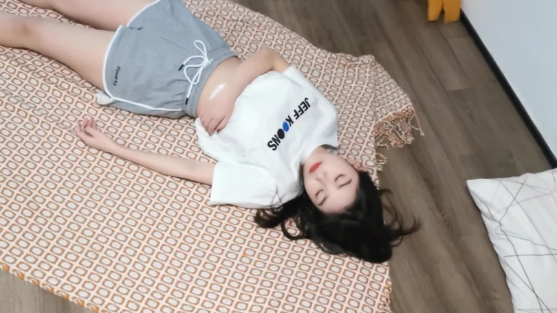 男子回到家中发现妹子尤涵昏倒在地,然后在她昏迷时,男主对女孩进行欣赏和摆弄
