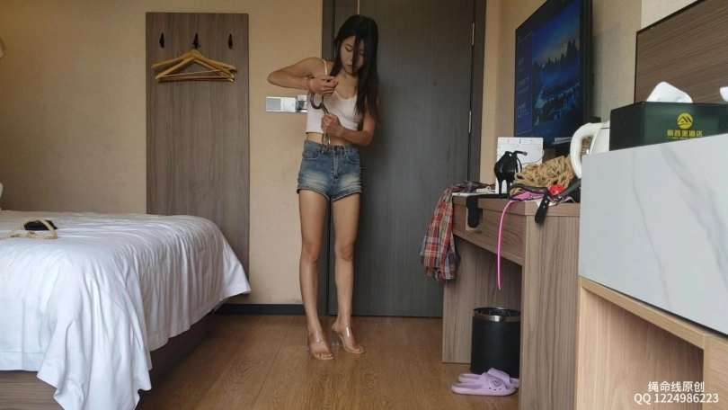 安琪男朋友走了就有点放肆了,本来给她绑了超紧直臂,刚绑好手就麻了,只能换成了日式驷马,绑好后马上上手挠脚弄腰,哈哈!