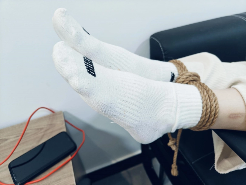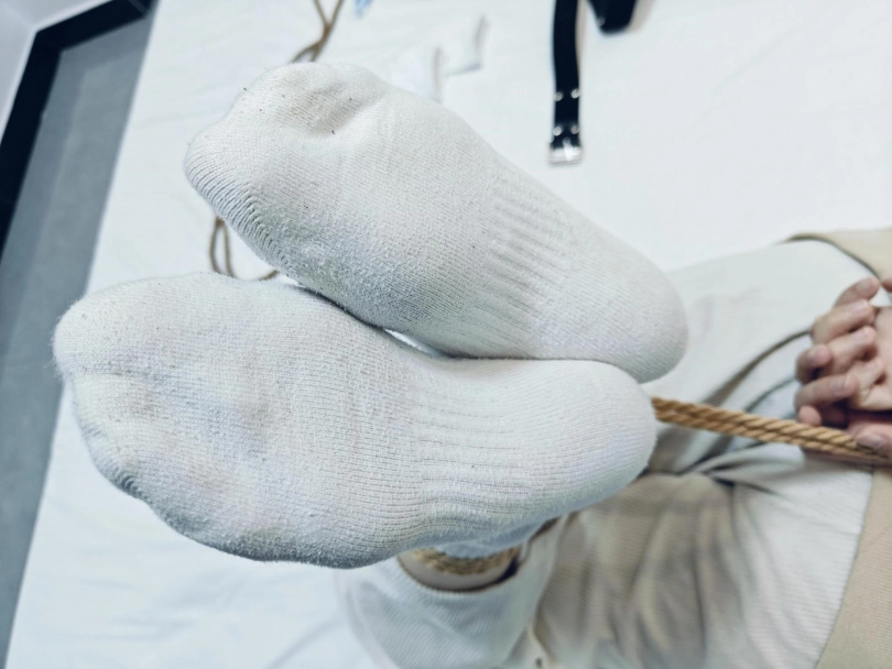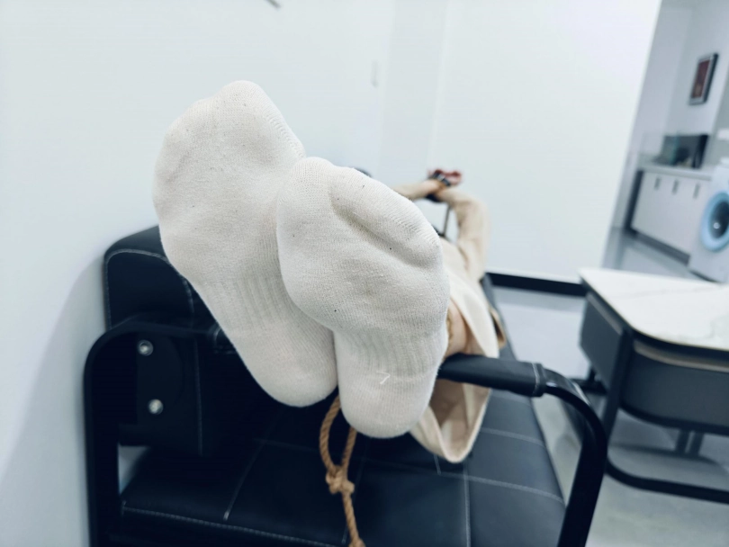 意邀请函予在下课后直接过来捆绑,袜子是穿了一个早上有些微微汗水(视频中有特写),赶上天气比较炎热,挠着的时候脚底开始发汗
